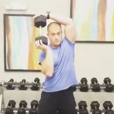 Day 1: Dumbbell HaloDumbbell halo. Standing with your feet shoulder width, circle your head with the dumbbell rotating the weight around, behind and in front of you. Begin with 15 lb dumbbell.